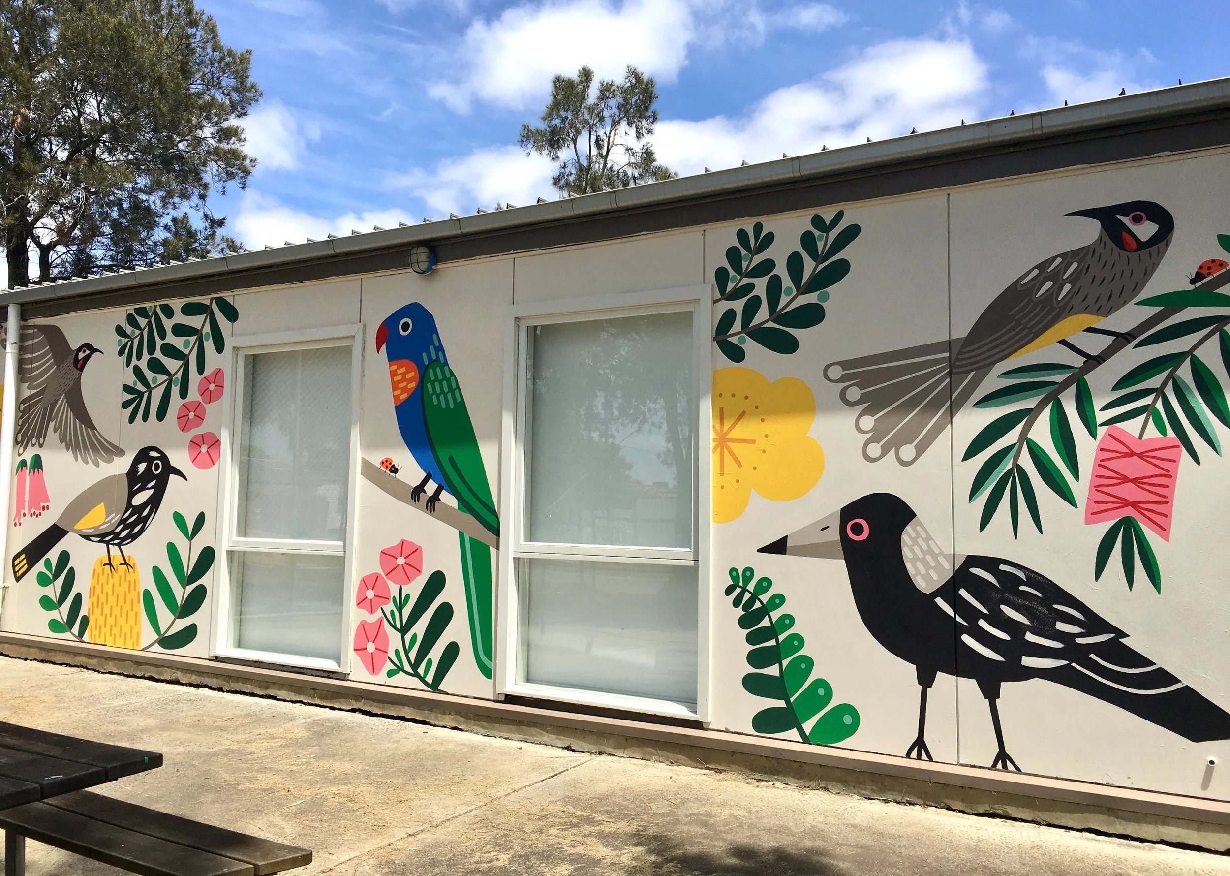 Bird Count mural, Deer Park North Primary School, 2021, 8 m x 2.7 m